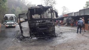 ध्वस्त भयो दाउन्ने बजारमा आगोलागेर भारतीय बस