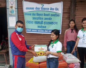 दुम्किबासको कामना सेवा बैंकले दियो विपन्न परिवारलाई खाद्य सामग्री