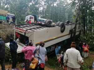 भ्रमणबाट फर्किँदै गरेको स्कुल बस बुलिङटारमा दुर्घटना