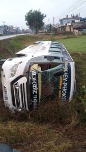 सुर्खेतबाट काठमाडौं जाँदै गरेको बस कावासाेतिमा दुर्घटना / १७ जना घाइते