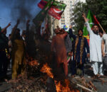 पूर्वप्रधानमन्त्री इमरान खान पक्राउको विरोधमा पाकिस्तानमा प्रदर्शन