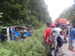भ्रमणबाट फर्किँदै गरेको स्कुल बस बुलिङटारमा दुर्घटना
