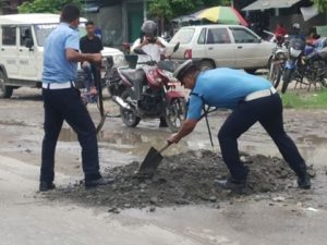 सडकको खाल्टा खुल्टी पुर्दै नवलपुर ट्राफिक