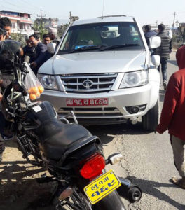 कृषि सामाग्री संस्थान कावासोतीको मोटरसाइकललाई कारले ठक्कर दियो एक जना घाईते