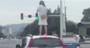 कारको छतमा चढेर यी युवतीले बीच सडकमै देखाइन् तमासा