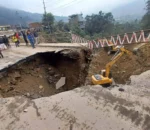 तनहुँको आँबुखैरेनीमा सडक भासिँदा पृथ्वी राजमार्ग अवरुद्ध